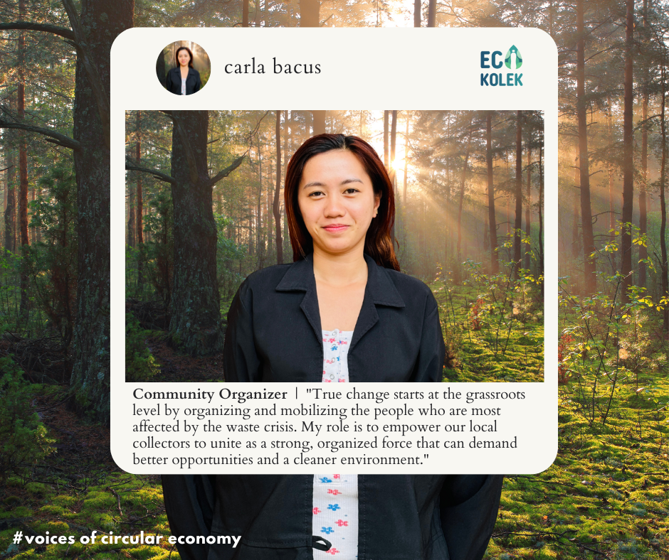 As part of our "Voices of Circular Economy" series, Eco Kolek is thrilled to introduce Carla Bacus, our dedicated Community Organizer, a board passer on Licensure Examination for Teachers with a major in Social Studies. Carla brings a wealth of passion and experience to Eco Kolek, where she will work closely with impact communities to drive essential waste segregation efforts and educate residents on the importance of reducing plastic waste.