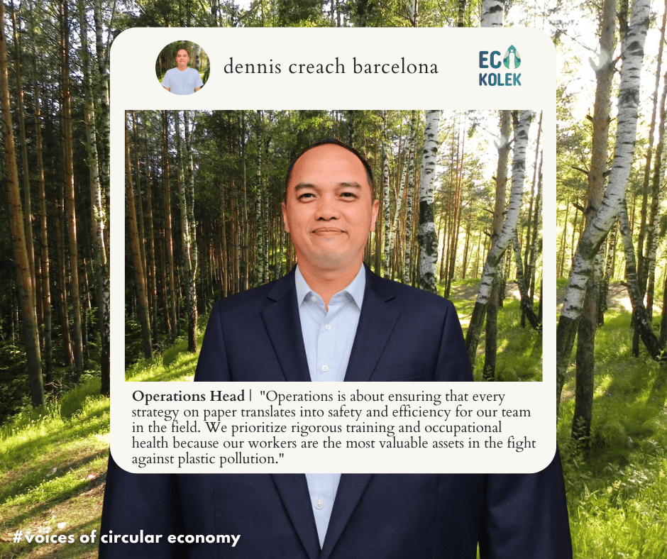 As part of our "Voices of Circular Economy" series, Eco Kolek is proud to introduce Dennis Creach Barcelona, our new Head of Operations. Dennis brings with him a wealth of experience in operations management and sustainable development, having previously worked as a researcher for almost five years at the Palawan Council for Sustainable Development. As a graduating law student from Philippine Law School, Dennis combines his legal expertise with his operational knowledge to lead Eco Kolek in its mission to promote sustainable waste management practices and combat plastic pollution.