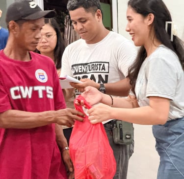 The distribution was carried out in Puerto Princesa City, where Eco Warriors are based, to provide immediate relief to waste collectors whose livelihoods were disrupted by the storm. Eco Warriors, recognized as frontliners in environmental protection and solid waste management, were unable to continue their daily work due to the typhoon’s impact.