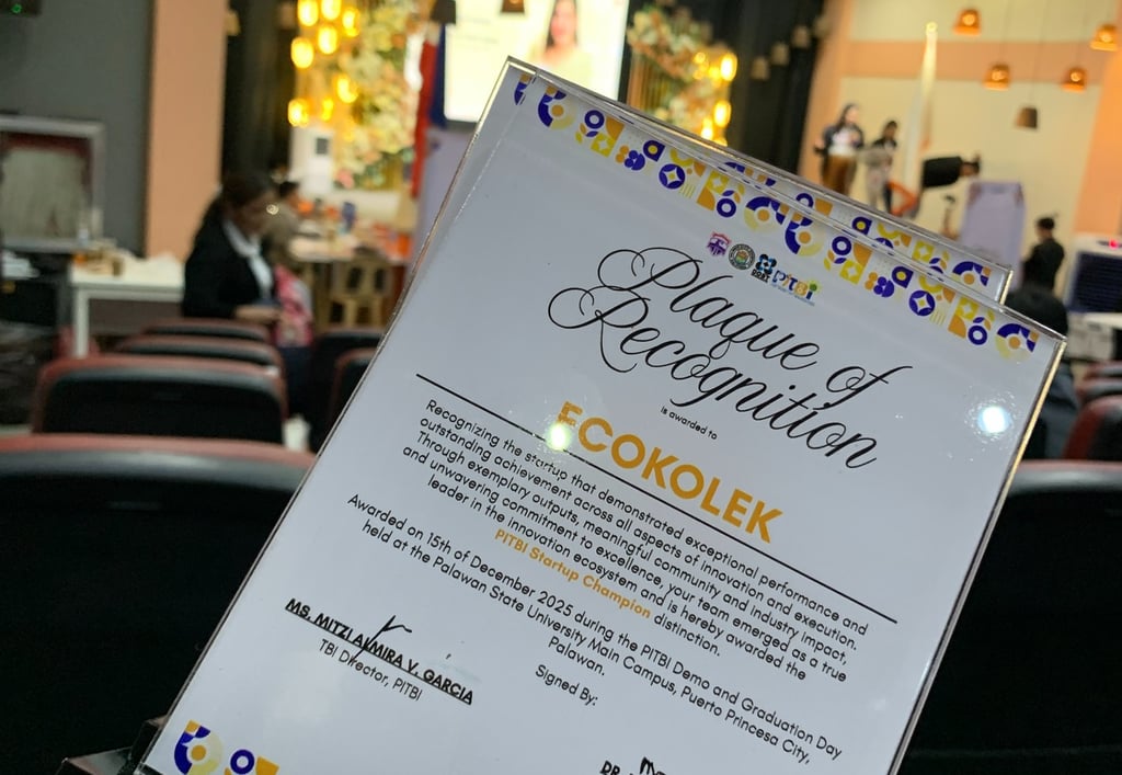 Eco Kolek was honored at the Palawan Innovation and Technology Business Incubator (PITBI) Demo and Graduation Day for its significant contributions to sustainability-driven solutions and community development. Held at the Palawan State University Amphitheater, the event marked the culmination of PITBI’s Cohort VI incubation program and recognized startups for their outstanding performance and innovative impact.