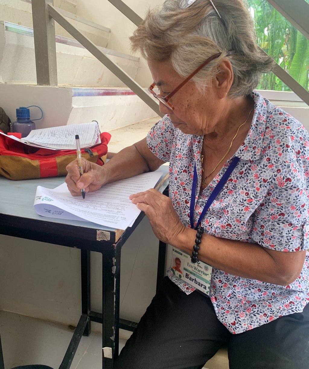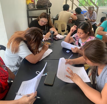 The evaluation was held at the Barangay Multi-Purpose Hall in Laphipai Subdivision, Barangay Sicsican, and was attended by Eco Kolek staff and 28 Eco Warriors who completed the full training cycle. The activity consisted of a 100-item written examination designed to assess participants’ knowledge retention, understanding of core environmental concepts, and readiness to apply practical skills in community settings