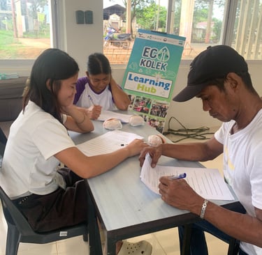 Eco Kolek conducted the final evaluation of its Eco Warriors Training Program on November 27, 2025, marking the completion of a two-and-a-half-month capacity-building initiative focused on sustainable waste management and community environmental leadership. The evaluation was held at the Barangay Multi-Purpose Hall in Laphipai Subdivision, Barangay Sicsican, and was attended by Eco Kolek staff and 28 Eco Warriors who completed the full training cycle. The activity consisted of a 100-item written examination designed to assess participants’ knowledge retention, understanding of core environmental concepts, and readiness to apply practical skills in community settings