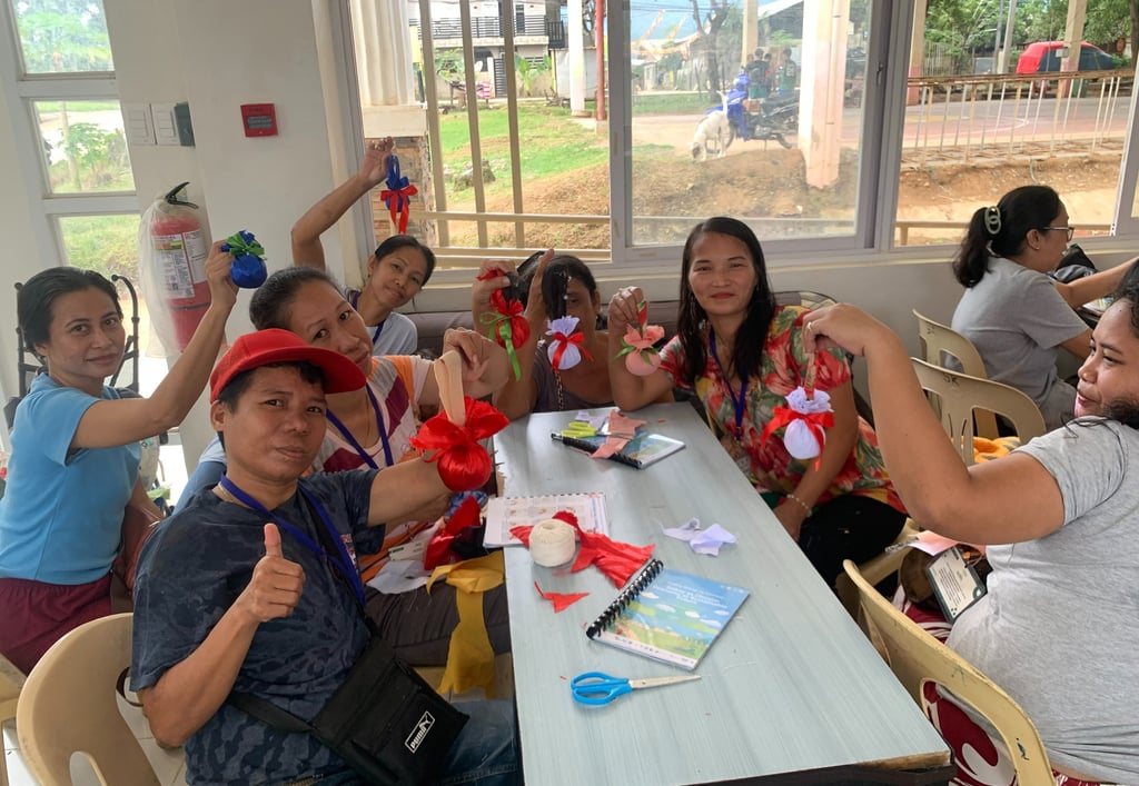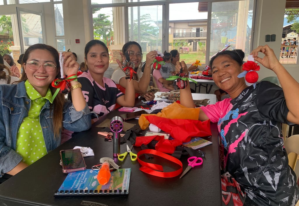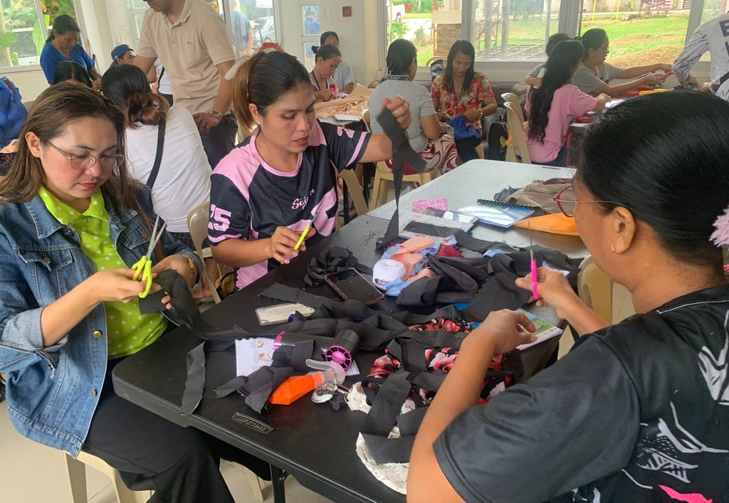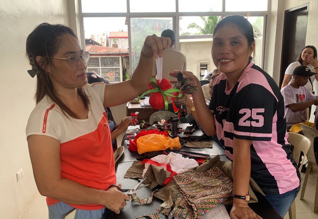 The workshop provided participants with structured instruction on creating a micro-enterprise. Ms. Cadorna detailed the complete product development cycle, from idea generation and material selection to prototyping, finishing, and market strategy. The core hands-on activity involved transforming old shirts and scrap fabric into unique Christmas balls. The training staff actively assisted the participants, ensuring comprehension of the skills needed for replication at home.