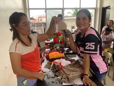 Project Zacchaeus (PZC) Eco Kolek with its partners: PEMSEA, and UNDP; conducted an entrepreneurship training session for its Eco-Warriors, focusing on basic product development and upcycling skills. The training, held at the SK Building in Purok Pinetree, aimed to promote sustainable livelihood opportunities by converting fabric scraps into marketable Christmas ornaments.