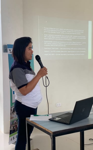 Waste collectors involved in the Project Zacchaeus (PZC) Eco-Kolek program completed a specialized Health and Safety Training session on October 27, 2025. The training was a collaborative effort with the Department of Health (DOH) - Puerto Princesa, aimed at mitigating occupational hazards inherent to solid waste management.
