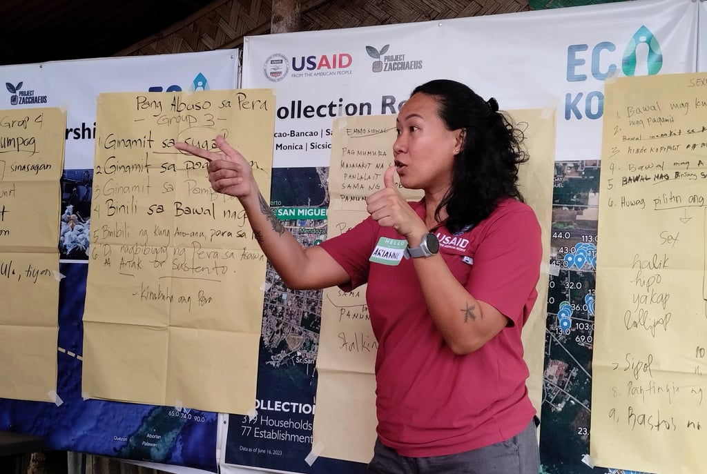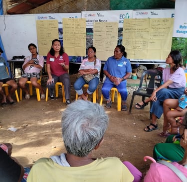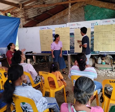 With the support of USAID, Clean Cities Blue Ocean, Women in Waste Economic Empowerment, Project Eco Kolek conducted a 2-day gender empowerment and gender-based violence training with Arianne Oligario. Held in Barangay Bancao-Bancao and Sicsican in Puerto Princesa on January 18 and 19, 2024.